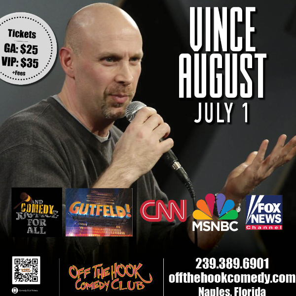Live comedy at Off the Hook Comedy Club featuring Comedian Vince August Live in Naples, Florida!.