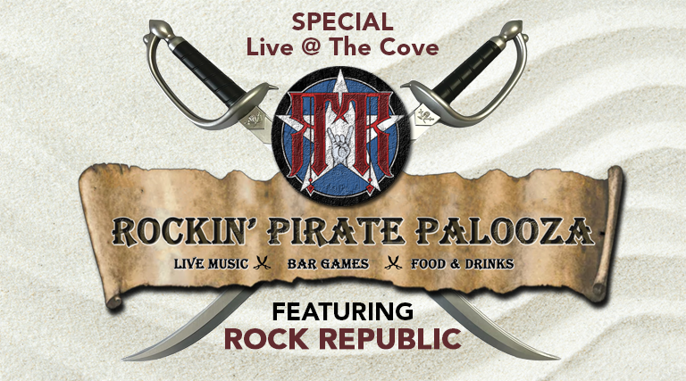 This week’s Live @ The Cove Event is now a SPECIAL EVENT – ROCKIN’ PIRATE PALOOZA featuring ROCK REPUBLIC. This event is FREE of charge! Saturday, May 30, 2026 The Cove Outdoor Bar – 3920 City Gate Blvd. North, Naples, FL 34117 5-10 pm with band playing from 6-9 pm. Register HERE to win a treasure chest full of prizes! Come on out and rock The Cove with popular local band – ROCK REPUBLIC while wearing your best Pirate Costume! The Cove will be decked out in pirate decorations and will have special pirate-themed drinks and food from the Fuel Food Truck! There will be corn-hole, beer pong and special promotions. This FREE event is from 5-10 pm and Rock Republic will play from 6-9 pm. Due to the extreme popularity of Rockin’ Pirate Palooza, we have expanded the event and moved the concert stage onto the Great Lawn! **All guests are welcome to bring their own chair or blanket!** Register early for a special commemorative gift! Register HERE! The best pirate costumes will also have a chance to win special PCSC, FC Naples & Local Attractions prizes! The Exciting New Music Promotion at Paradise Coast Sports Complex is – LIVE @ THE COVE! Check out the live music each Saturday night at The Cove from October through May! The Cove Outdoor Bar is a great venue to kick back, relax and listen to some great live music. Soak in the picturesque Southwest Florida evening while you watch the sunset over the lake! All while enjoying the variety of food trucks that will be onsite. How else should you listen to live music in SW Florida? This week’s entertainment will be featuring: Rock Republic #PlayParadise #ParadiseCoast #TheParadiseCoast #Exit101 #RockRepublic #RockinPiratePalooza #Live@TheCove #LiveMusic #naplesmusic