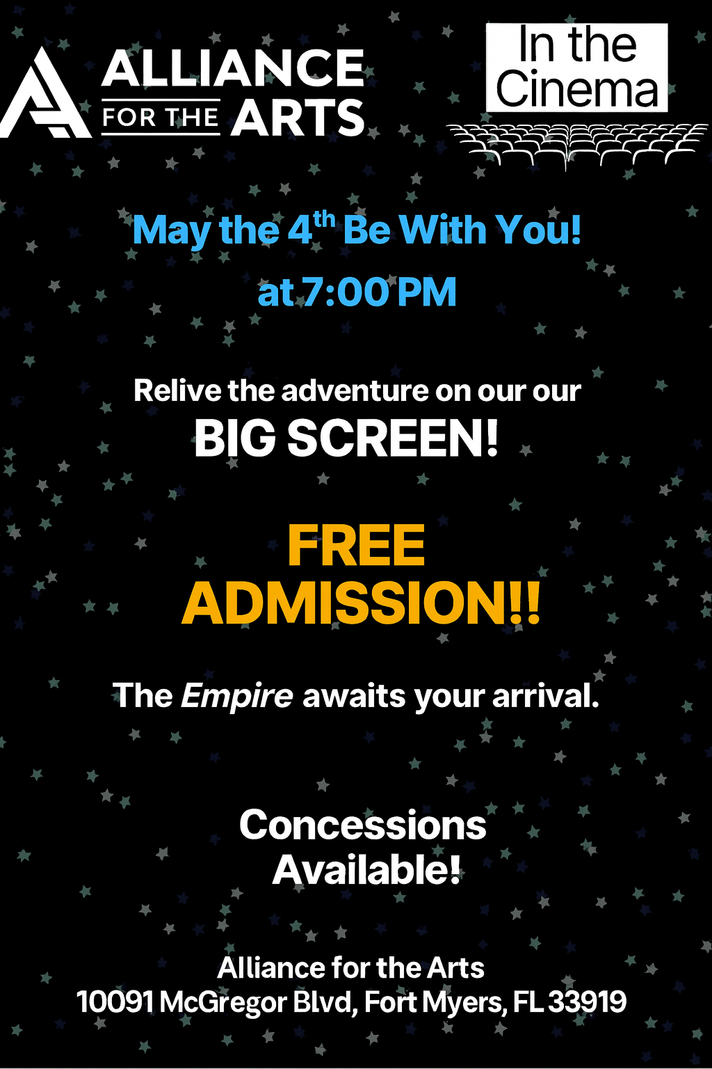 🌟 May the 4th Be With You! 🌟 Special Screening at Alliance for the Arts In a galaxy not so far away… Join us on Monday, May 4, 2026, as Alliance for the Arts celebrates Star Wars Day in epic style! We’re screening the best sequel ever made — on the BIG SCREEN! 🕖 Showtime: